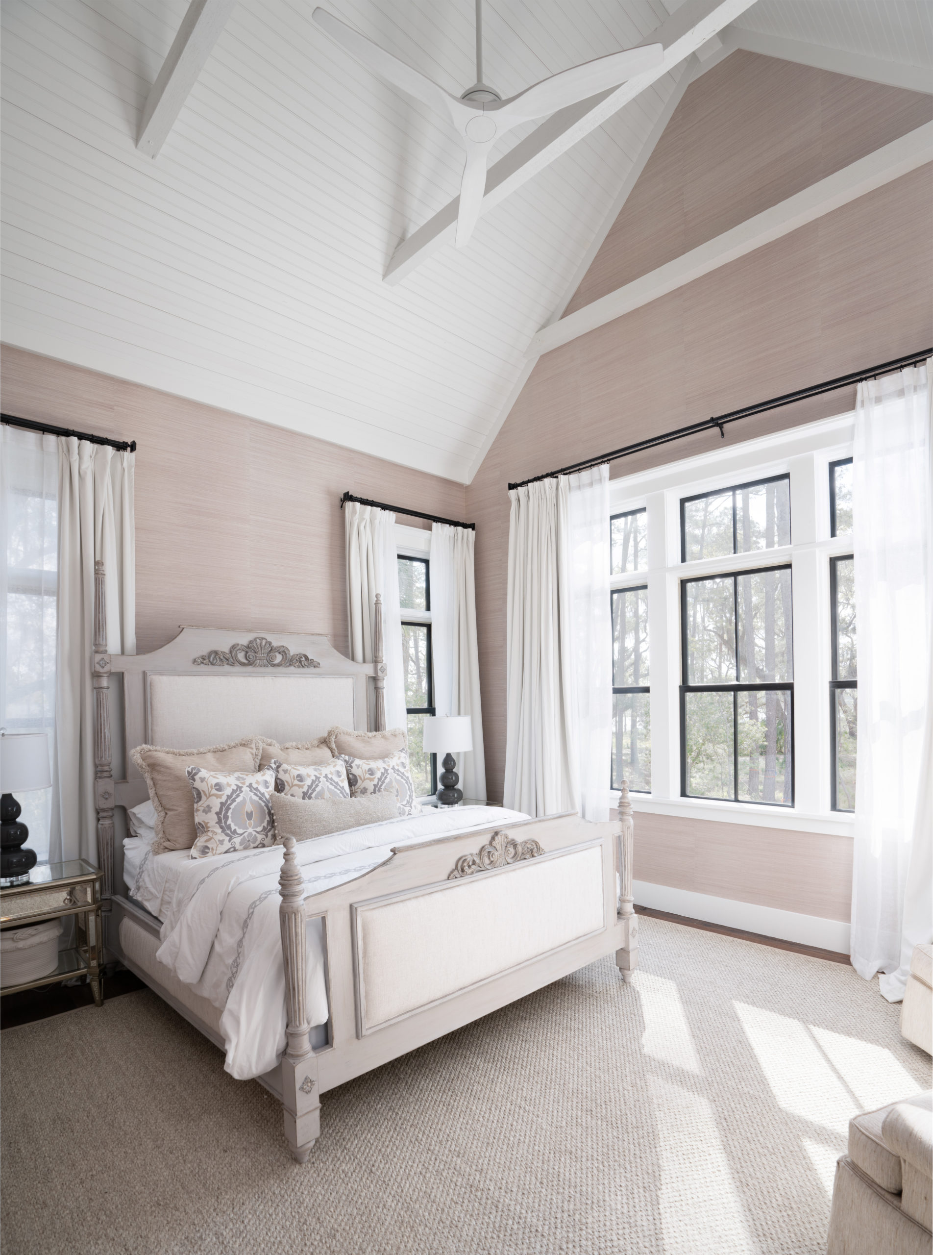 With its distinctive red rooflines grazing the tops of the trees, the Palmetto Bluff home of Sebrina and Chris Leigh-Jones cuts a distinctively modern profile. Apart from all the crisp white newness of it, there is an intriguing freshness to the way its various slopes and dormers play with the traditional Lowcountry design.