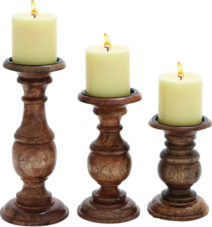 Crafted from mango wood, this finished candle holder set adds a ravishing edge to your interior and living space. Available at overstock.com. $45