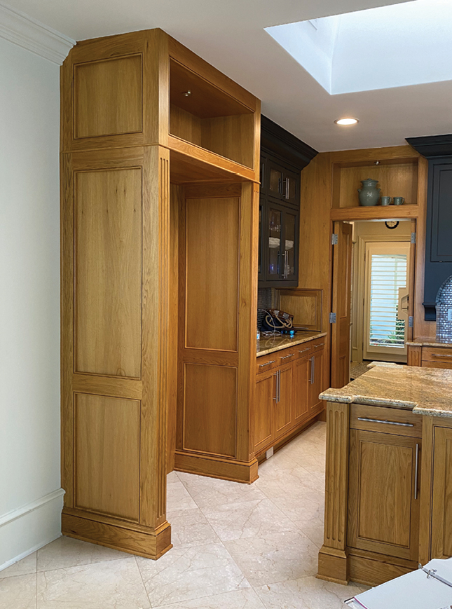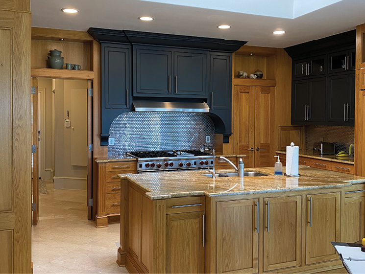 Calling on Distinctive Granite & Marble, Williams worked with them on a unique quartz countertop with the seam for a second layer extending for bar seating hidden ingeniously beneath a miter joint. “It was a feat of mental engineering,” said Williams. “The fun part of what I do is thinking things through mechanically, figuring out how we can make this work.”