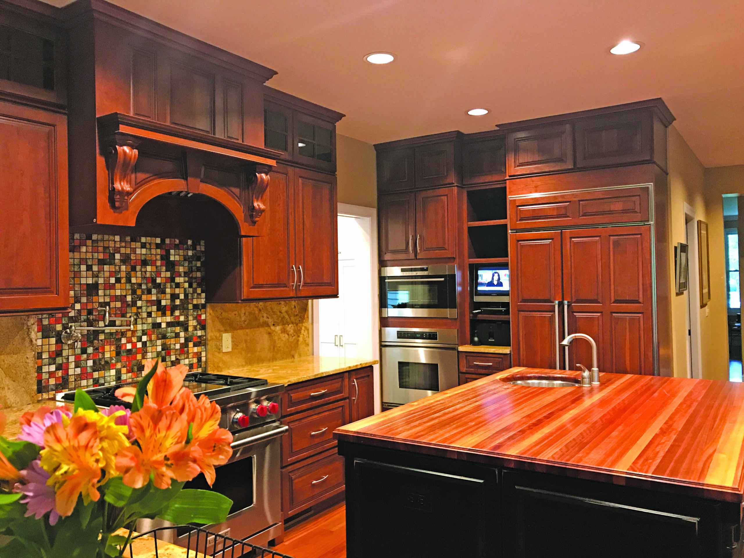 “There’s always one element that triggers design decisions, and in this case it was the back-splash tile,” said Williams. “I generally tell people to make their flooring, counter top and back splash selections before finalizing a cabinet finish, as there are an almost unlimited number of cabinet finishes to choose from.”