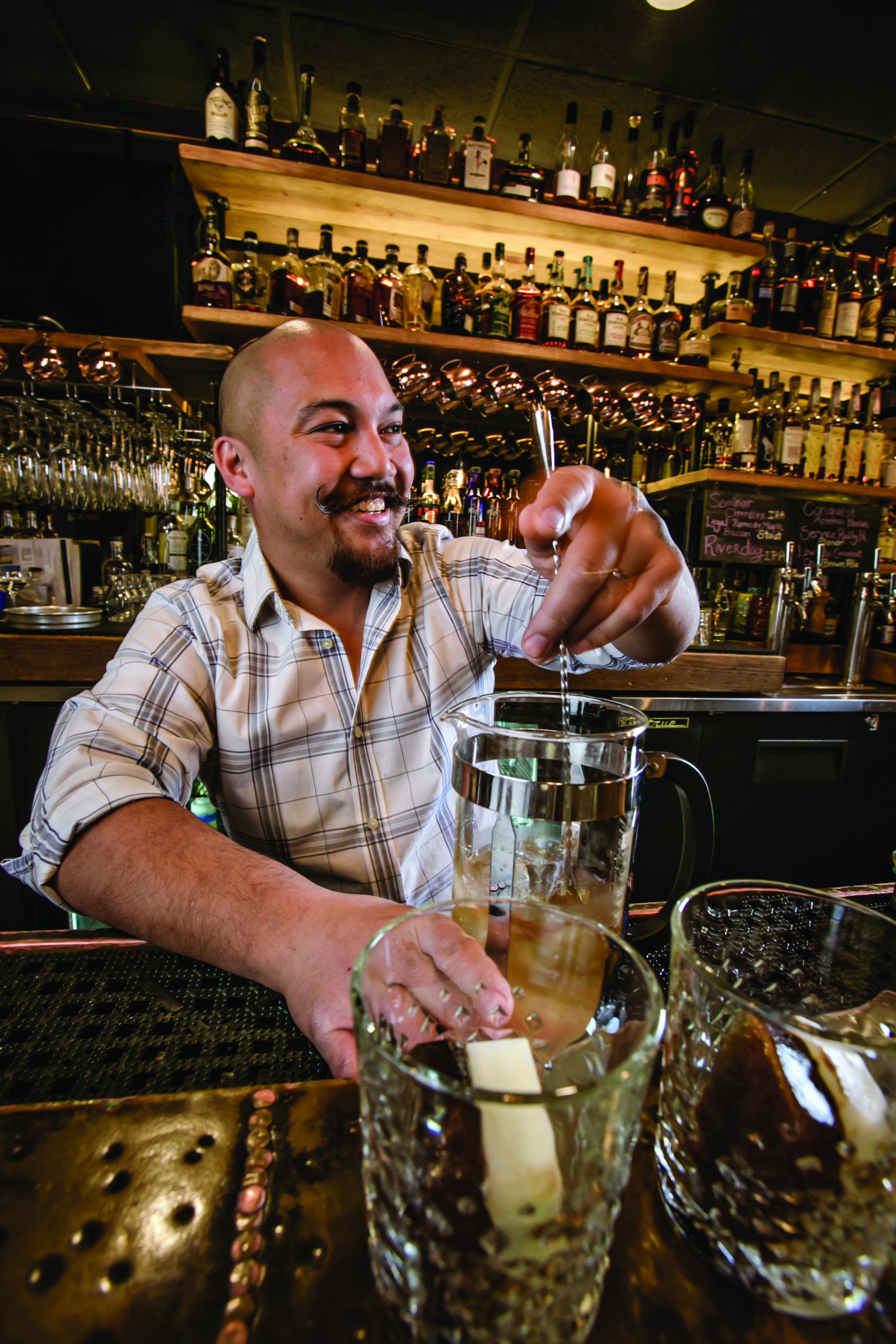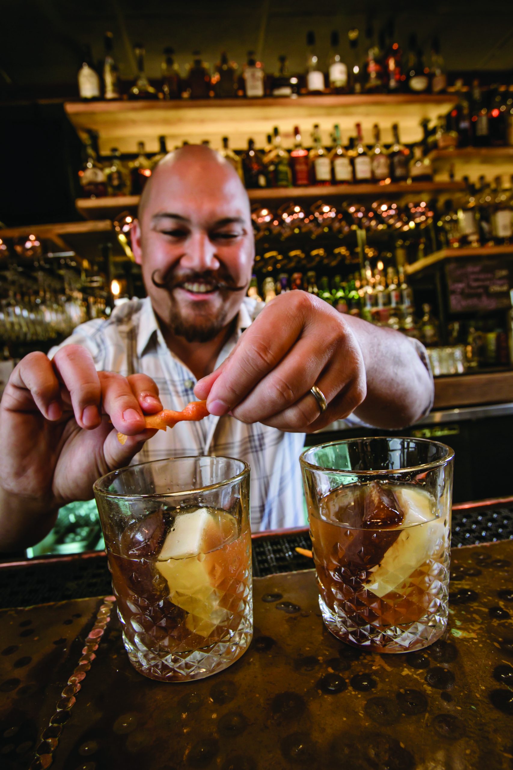 Paul Rabe says being a craft bartender with a curly mustache makes him a bit of a walking, pouring cliché. And he’s fine with it.
