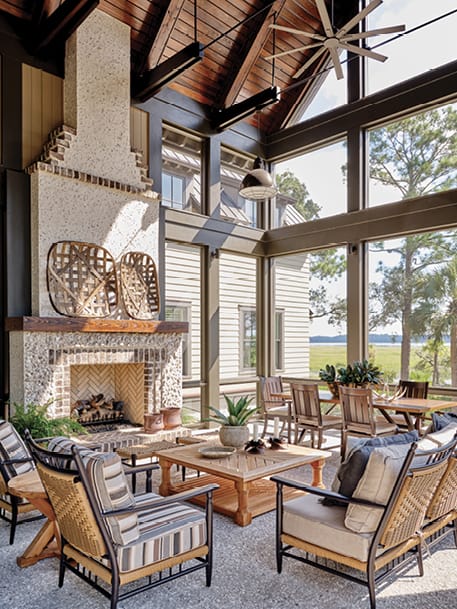 The Eidts embraced the dual aspect of the design, pointing out that the strategically elevated plans also allow them to enjoy the breathtaking backdrop of the low-lying floodplain without concerns over King Tides or severe storm surge. “Views in the lowlands of Spring Island are unmatched,” Brian said. “That’s what drew us to this home site in the first place.”