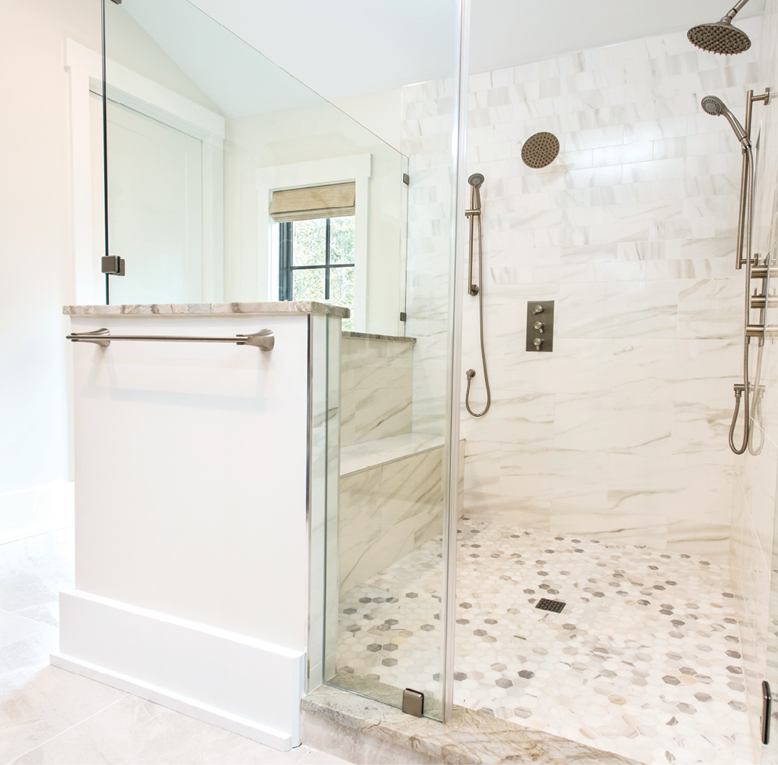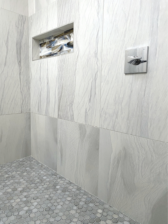 Set in large-format porcelain tiles, the floor makes one of the most dramatic statements in the home. As one of just 1,800 certified tile installers in the entire country, and one of just three between Savannah and Charleston, Kenny Nix is in a unique position to ensure such an undertaking is done correctly.