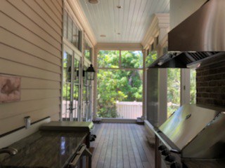 Also not to be missed, Padron’s media room, where a large custom entertainment center by Litchfield Cabinetry accommodates an 8-foot TV screen and elaborate sound system. “The Element team suggested a sleek sliding barn door to permit better views of the marsh,” Padron said.