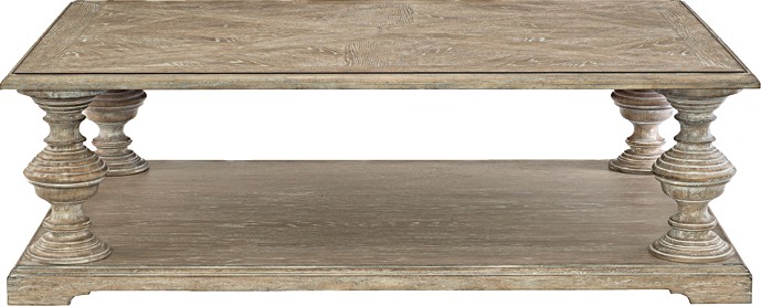 This Campania Cocktail Table has a fancy face top of flat cut and quartered white oak veneers, one shelf and adjustable glides. bernhardt.com
