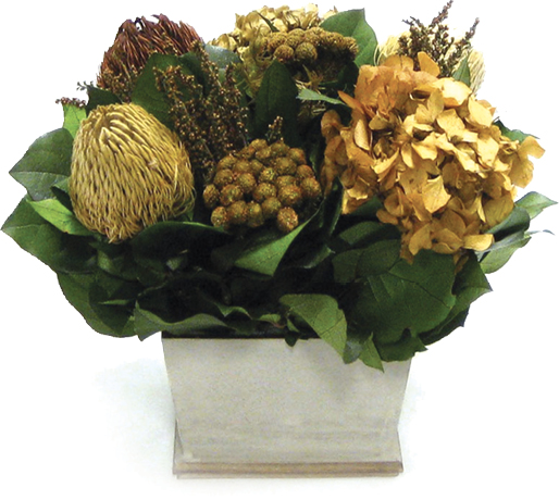 Dried and preserved floral arrangements