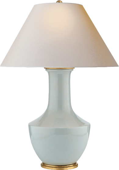 This chic ice blue porcelain Lambay Table Lamp from Chapman & Myers features graceful proportions and classic styling.