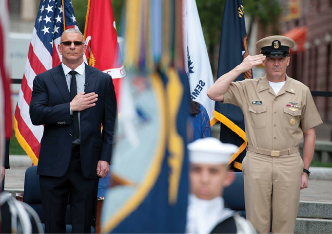 BRINGING THE HEAT Robert Irvine is shown striking a pose with Anne Burrell on the set of “Worst Cooks in America,” working his magic during a “Robert Irvine Live!” cooking demonstration (top) and being recognized by the U.S. Navy as an Honorary Chief Petty Officer, an honor bestowed upon him for his dedication to the Armed Services and commitment to excellence.