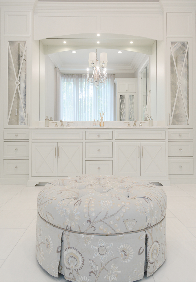 “We listened to the customers’ wishes, understanding their desired outcome, to create a fresh and unique space that would coordinate with the rest of their home, as well as the rest of the features in their bathroom,” said Jessica Cheek, interior sales manager for Savannah Surfaces. “They opted for natural materials to provide versatility and freshness to the design. The mosaic was custom made. And while the pattern was proprietary from the vendor, we selected the materials to make up the design; the specific color of the glass and stones, the placement of materials and the mixture of honed and polished finishes. These were all details hand-selected to enhance the focal point of the space.” LL