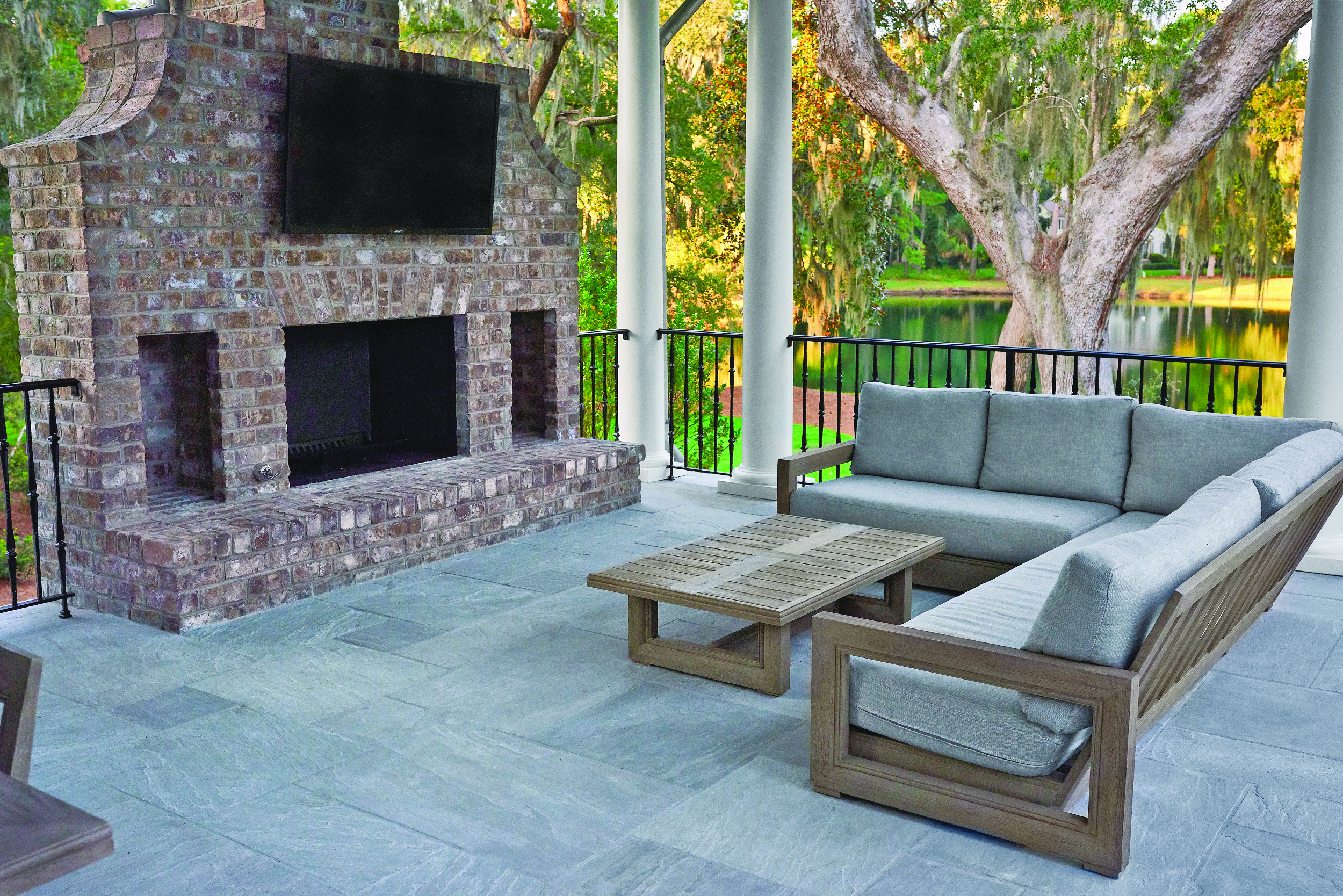 As this Palmetto Bluff patio proves, sandstone never goes out of style.