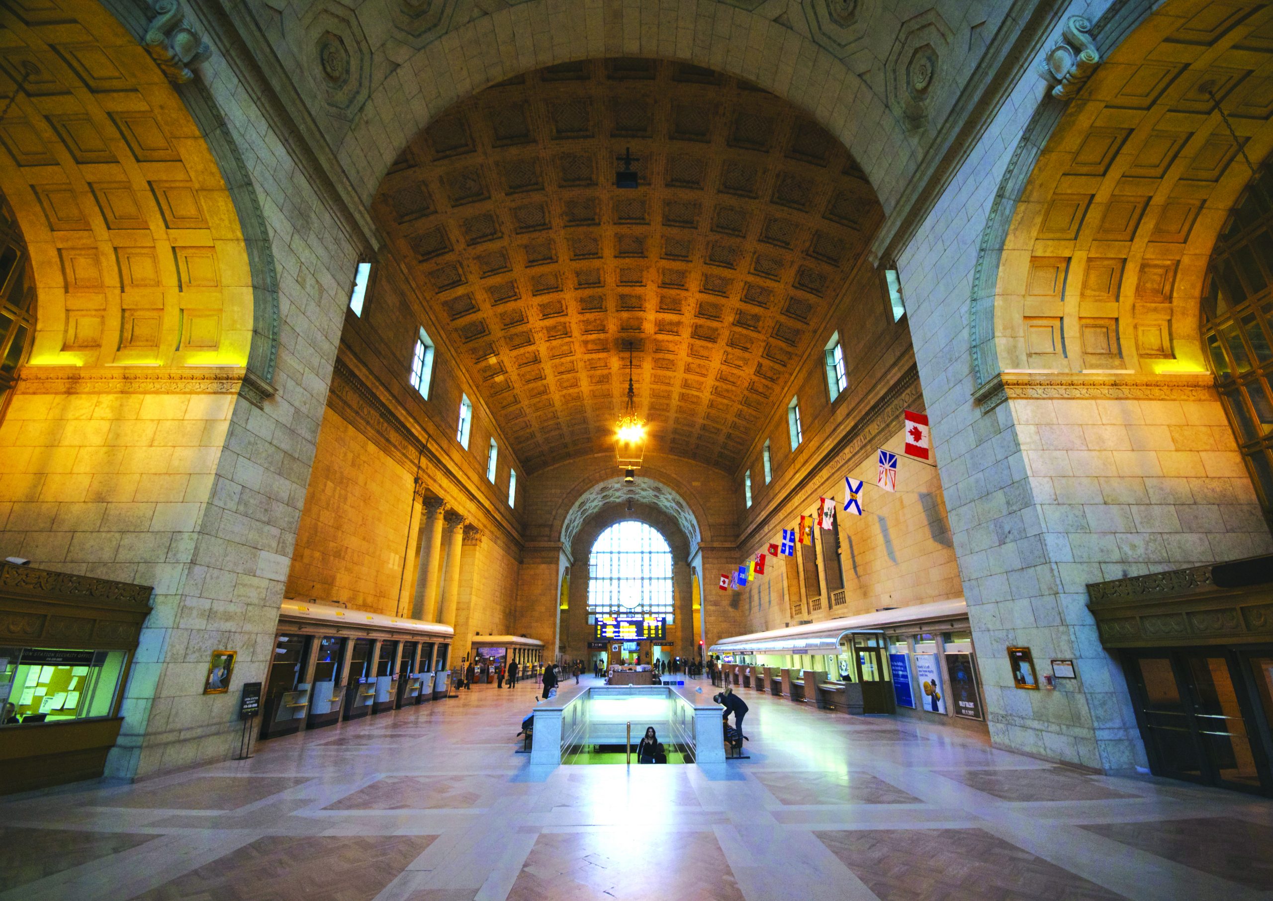 Union Station is also on Front Street, as is the Hummingbird Center and several theaters that serve as the venues for musicals, plays, opera and dance. The railroad station and transportation hub provides the start of a labyrinth of underground tunnels that extends for blocks. The world-famous Fairmont Royal York hotel is across the street from Union Station and has been featured in several movies and is rumored to be haunted.