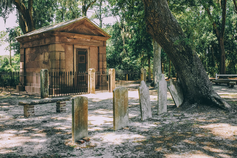 While the chapel is long gone, the mausoleum and cemetery remain a historic landmark and serve as an important reminder of a time that came before. This site is now owned and managed by The Heritage Library, a nonprofit library offering a wealth of historical knowledge about the Lowcountry. For additional information about the site, a tour calendar, and more, visit heritagelib.org. Zion Cemetery and Baynard Mausoleum is open daily and free to the public.